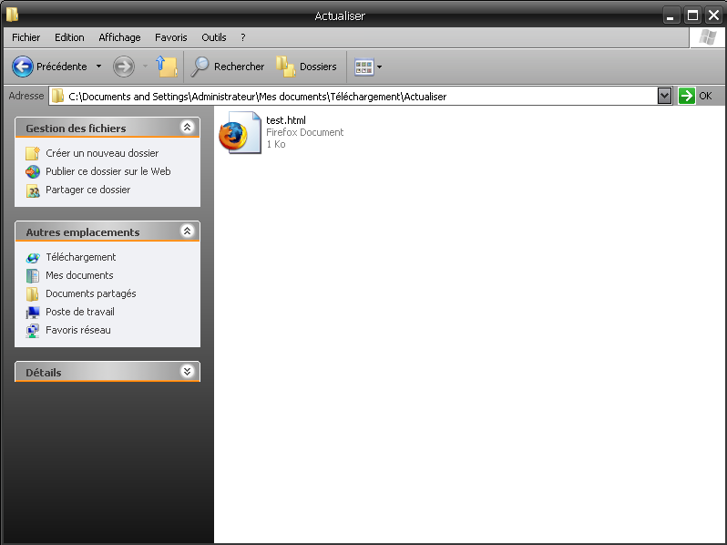 Imaginons que notre dossier se trouve dans le sous-dossier « test », alors nous aurions du écrire :