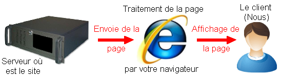 Donc : Le serveur ou se trouve le site envoie la page XHTML. Le navigateur du client exécute la page et l’affiche.
